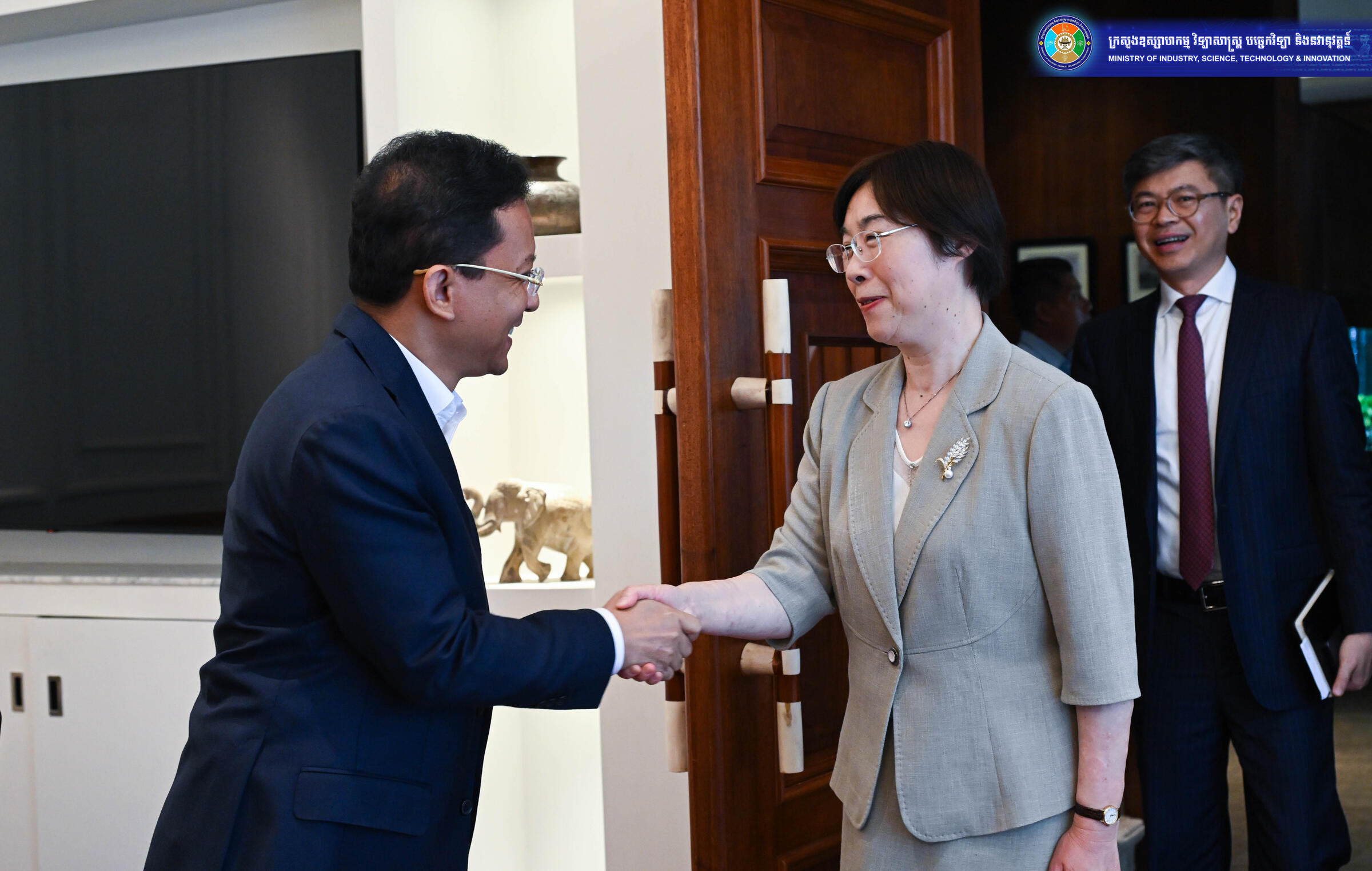រាជធានីភ្នំពេញ — ឯកឧត្តម ហែម វណ្ណឌី រដ្ឋមន្ត្រីក្រសួងឧស្សាហកម្ម វិទ្យាសាស្ត្រ បច្ចេកវិទ្យា និងនវានុវត្តន៍ បានទទួលជួបគណៈប្រតិភូធនាគារអភិវឌ្ឍន៍ហេដ្ឋារចនាសម្ព័ន្ធអាស៊ី (AIIB) ដឹកនាំដោយលោកជំទាវ Zou Jiayi អគ្គនាយក និងជាប្រធានក្រុមប្រឹក្សាភិបាលនៃធនាគារ AIIB ដើម្បីពិភាក្សាការពង្រឹងកិច្ចសហការលើវិស័យហេដ្ឋារចនាសម្ព័ន្ធ និងអាទិភាពអភិវឌ្ឍន៍នៅកម្ពុជា។