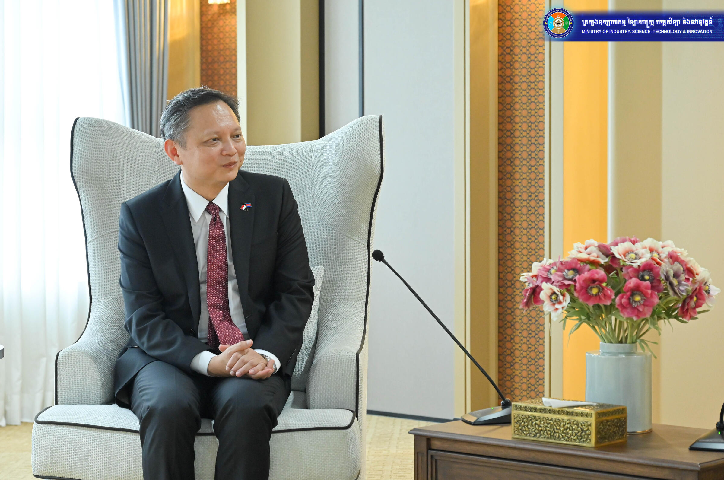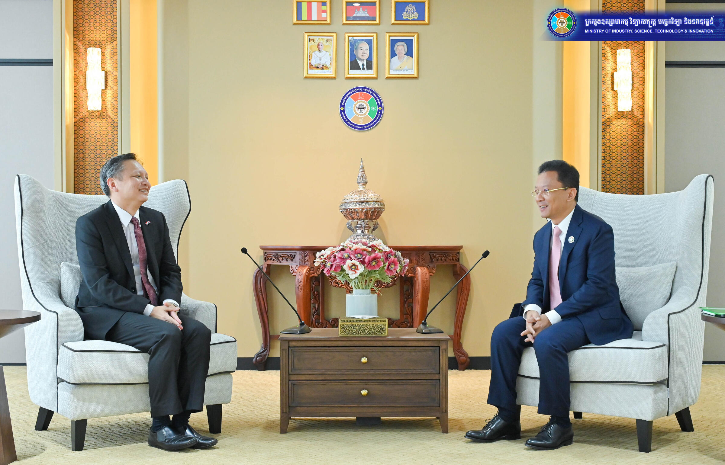 រាជធានីភ្នំពេញ ថ្ងៃទី២២ ខែមេសា ឆ្នាំ២០២៦ — ឯកឧត្តម ហែម វណ្ណឌី រដ្ឋមន្ត្រីក្រសួង ឧស្សាហកម្ម វិទ្យាសាស្ត្រ បច្ចេកវិទ្យា និងនវានុវត្តន៍ បានទទួលជួបឯកឧត្តម Steven Pang Chee Wee ឯកអគ្គរដ្ឋទូតសិង្ហបុរី ប្រចាំព្រះរាជាណាចក្រកម្ពុជា ដើម្បីពិភាក្សាការពង្រឹងកិច្ចសហប្រតិបត្តិការផ្នែកសុវត្ថិភាពអាហារ វិទ្យាសាស្ត្រ បច្ចេកវិទ្យា និងនវានុវត្តន៍ ដោយផ្តោតលើអត្ថប្រយោជន៍ជាក់ស្តែង និងការផ្សារភ្ជាប់ជាមួយវិស័យឯកជន។