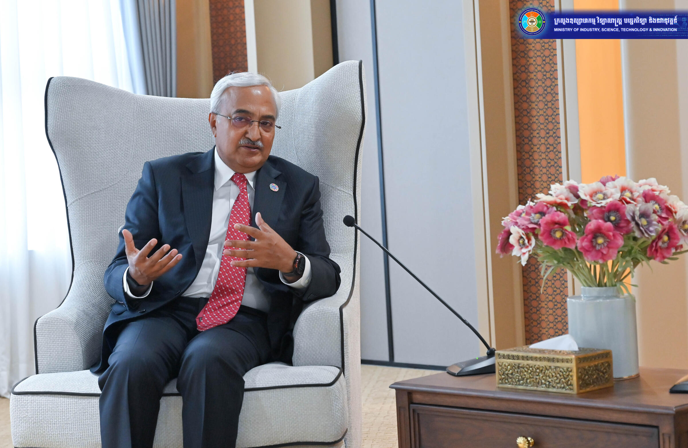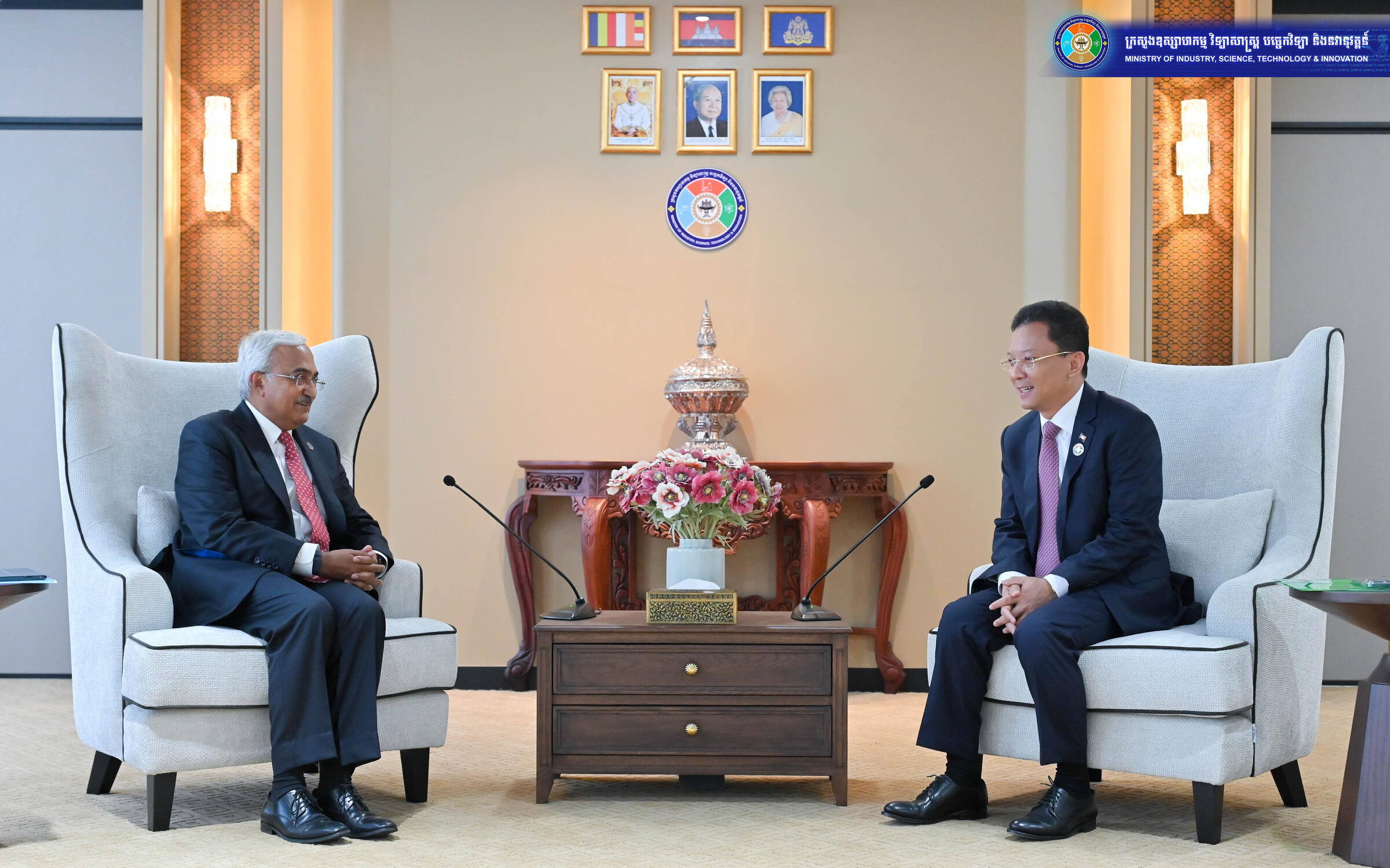 រាជធានីភ្នំពេញ ថ្ងៃទី៣០ ខែមីនា ឆ្នាំ២០២៦ — ឯកឧត្តម ហែម វណ្ណឌី រដ្ឋមន្ត្រីក្រសួងឧស្សាហកម្ម វិទ្យាសាស្ត្រ បច្ចេកវិទ្យា និងនវានុវត្តន៍ បានទទួលជួបគណៈប្រតិភូនៃគណៈកម្មការអេឡិចត្រូតិកនិចអន្តរជាតិ (IEC) ដឹកនាំដោយ លោក Vimal Mahendru អនុប្រធាន IEC និងប្រធានក្រុមប្រឹក្សាគ្រប់គ្រងស្តង់ដារ IEC ដើម្បីពិភាក្សាអំពីការចូលរួមរបស់កម្ពុជា ក្នុងការអភិវឌ្ឍស្តង់ដាអន្តរជាតិ និងការពង្រឹងកិច្ចសហប្រតិបត្តិការបច្ចេកទេស។