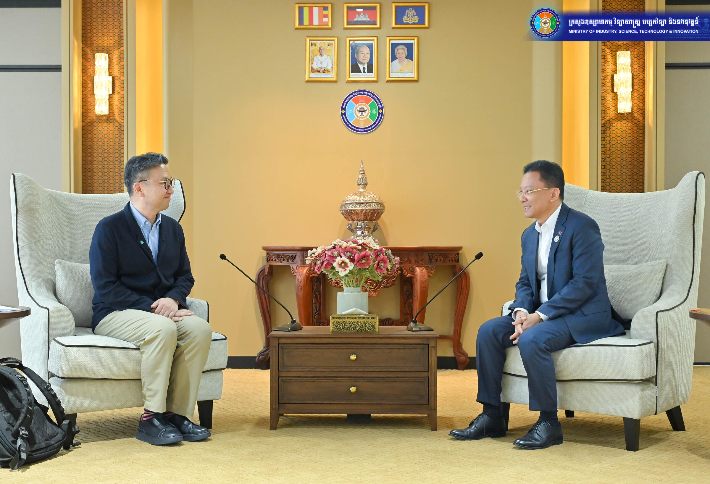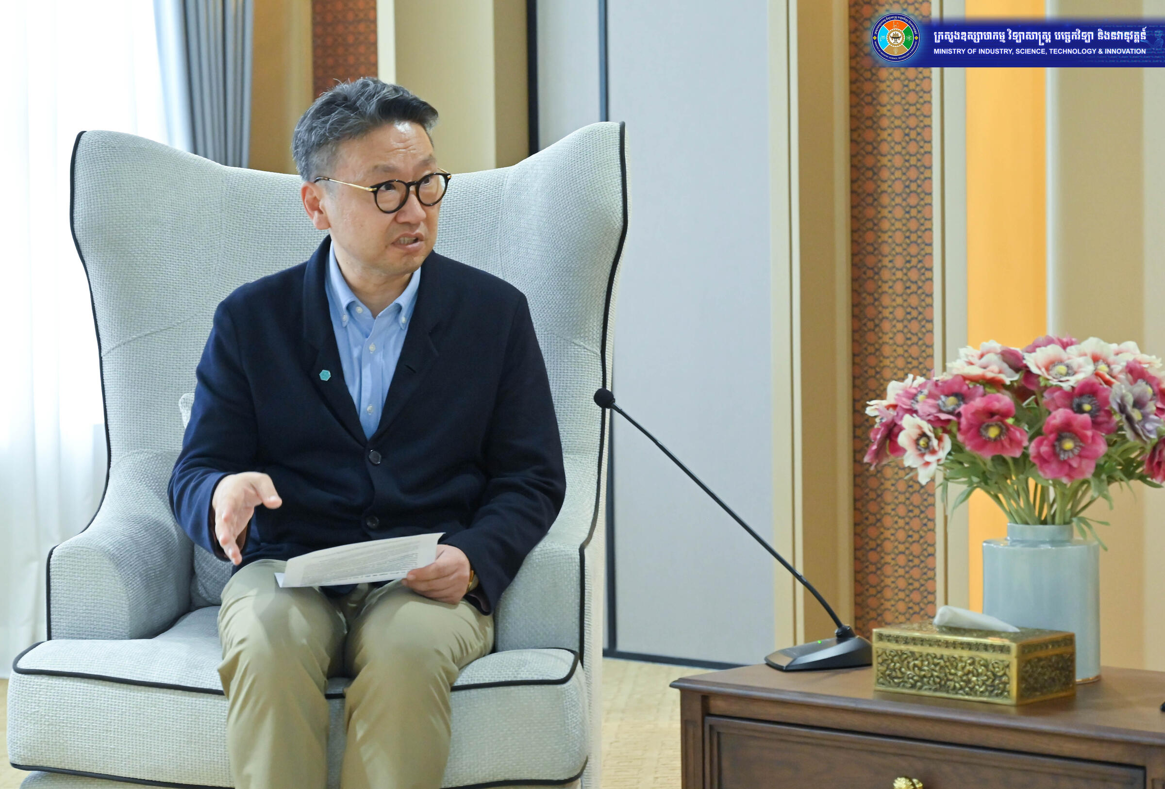 រាជធានីភ្នំពេញ ថ្ងៃទី ៨ ខែមេសា ឆ្នាំ ២០២៦ — ឯកឧត្តម ហែម វណ្ណឌី រដ្ឋមន្ត្រីក្រសួងឧស្សាហកម្ម វិទ្យាសាស្ត្រ បច្ចេកវិទ្យា និងនវានុវត្តន៍ បានទទួលជួបតំណាងវិទ្យាស្ថានអភិវឌ្ឍន៍បៃតងសកល (GGGI) និងធនាគារអភិវឌ្ឍន៍កូរ៉េ (KDB) នៅទីស្តីការក្រសួង ដើម្បីពិភាក្សាកិច្ចសហការក្នុងការអនុវត្តកម្មវិធីលើកកម្ពស់នវានុវត្តន៍បច្ចេកវិទ្យាអាកាសធាតុនៅកម្ពុជា។